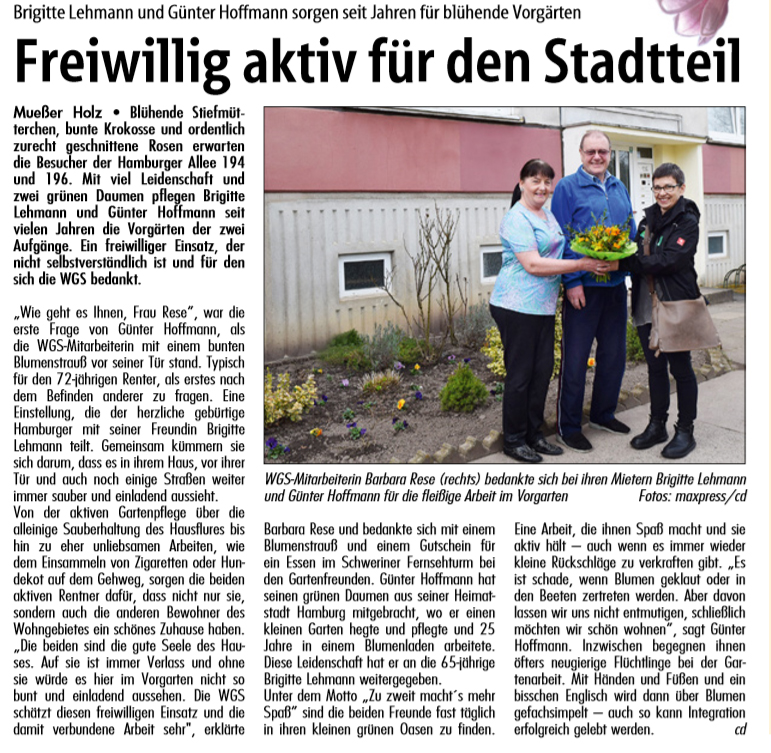 Weiter Informationen können sie in unserer Stadtteilzeitung "Schweriner Turmblick" nachlesen.