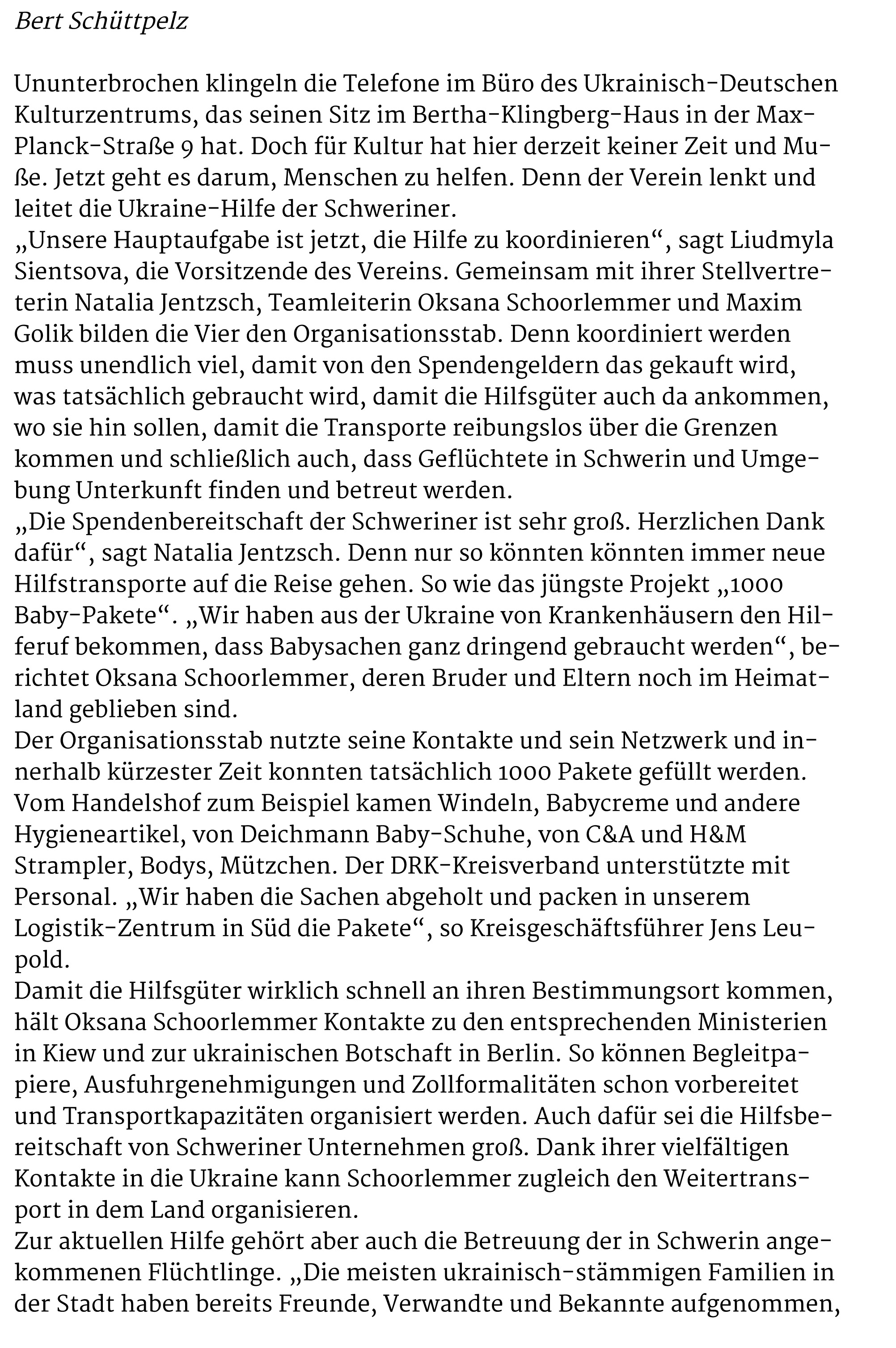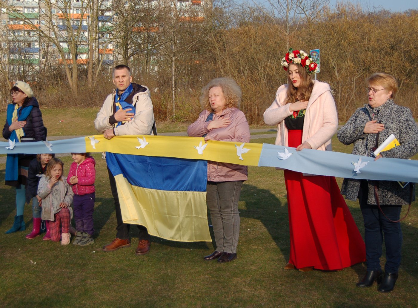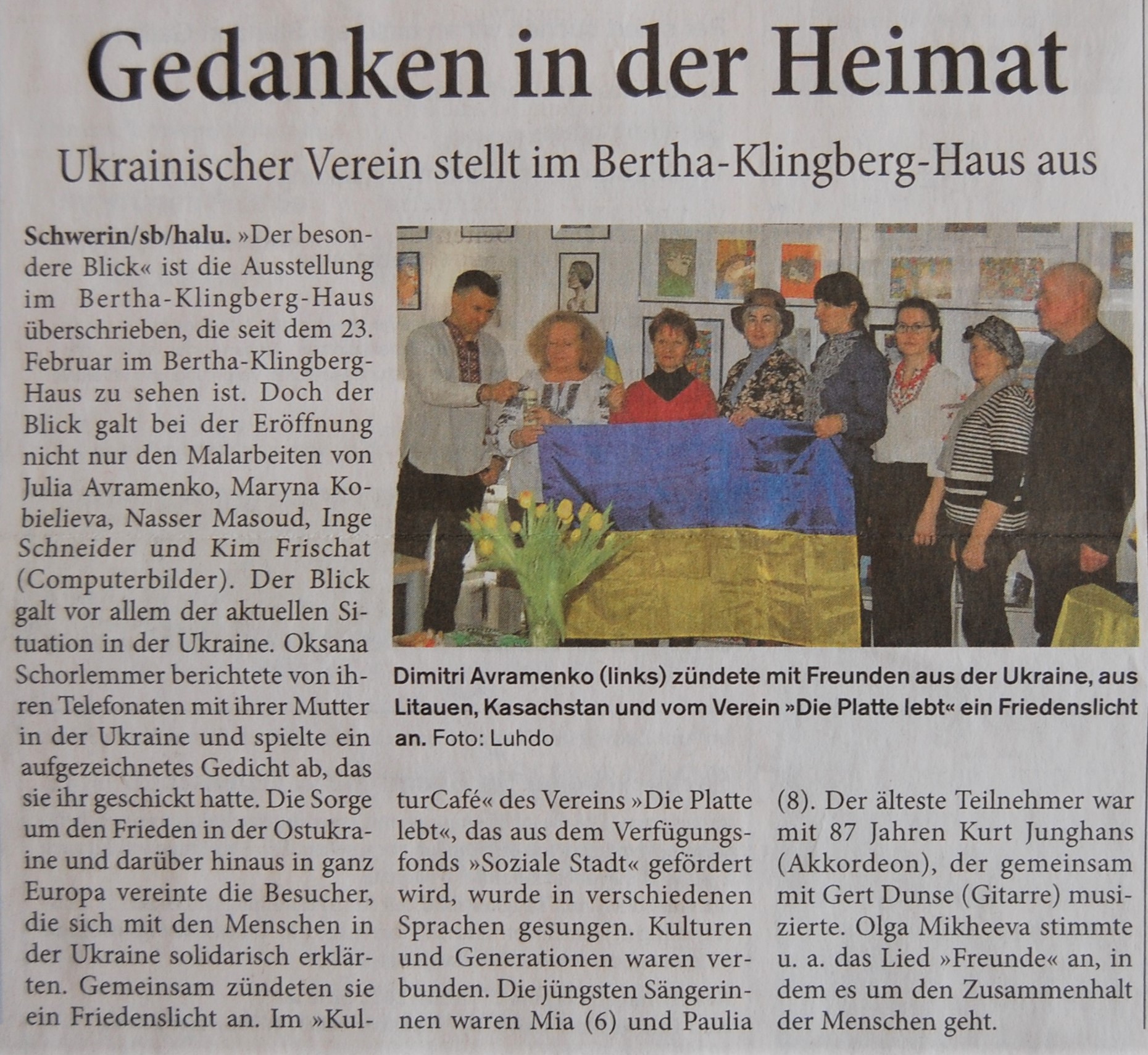 Es waren bewegende Momente auf dem Keplerplatz, als die Tauben in den Himmel flogen, Paulina mit den "Plattelinos" das Lied von der kleinen weißen Friedenstaube sang, Svetlana Nikonorova mit ihrer Bandura Lieder aus der Ukraine spielte, sich Oksana Schoorlemmer im Namen des Ukrainisch-Deutschen Kulturzentrums SIC an die Teilnehmer wandte und am Ende die ukrainische Nationalhymne erklang. Auch wenn nicht alles nach Plan lief, so war es doch ein schöner Moment der Solidarität, verbunden mit der großen Hoffnung auf Frieden in der Ukraine, in Europa und der ganzen Welt.