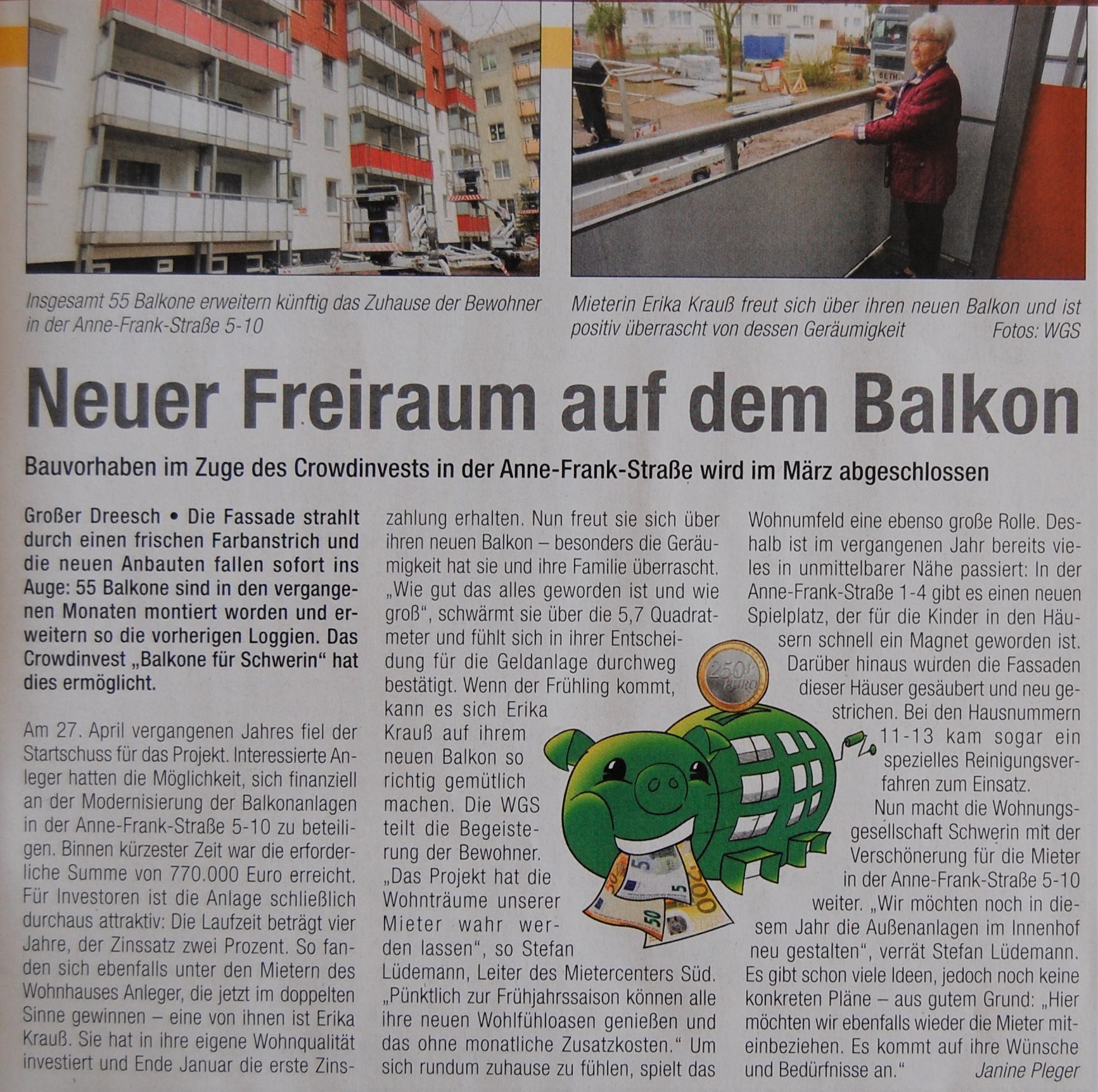 Interessenten melden sich bei der Schweriner Wohnungsbaugenossenschaft eG unter der Durchwahl 0385 7450-116.
