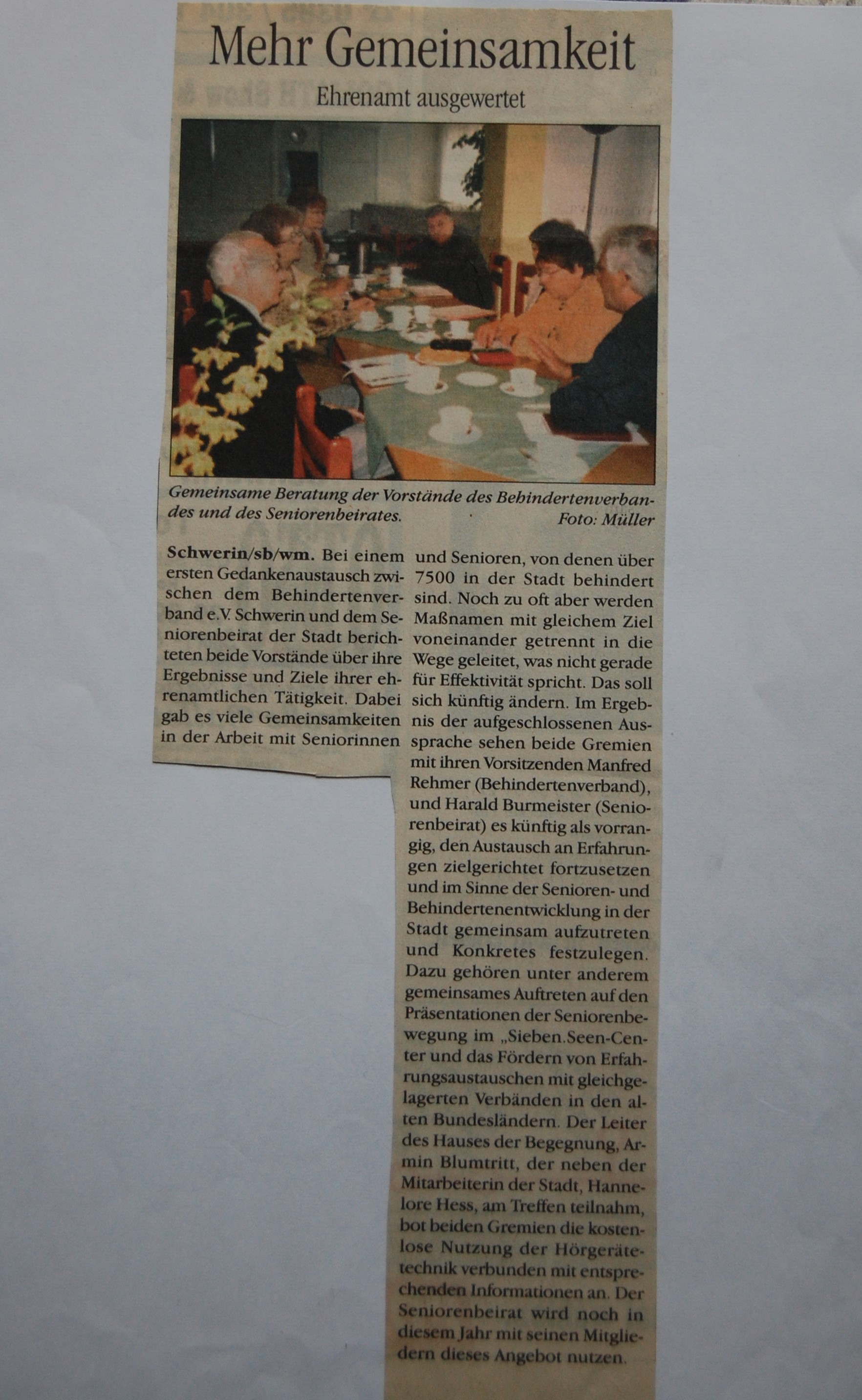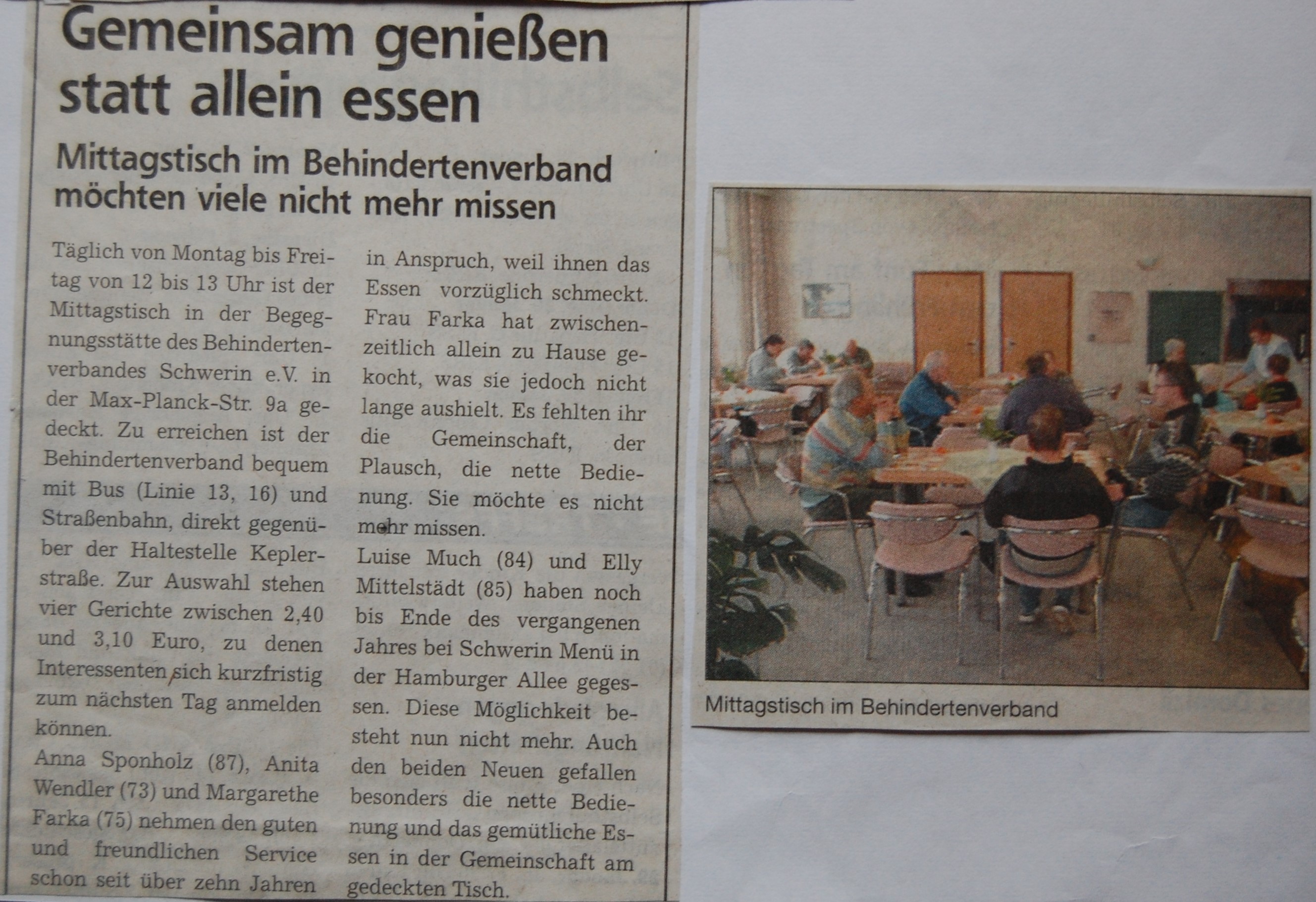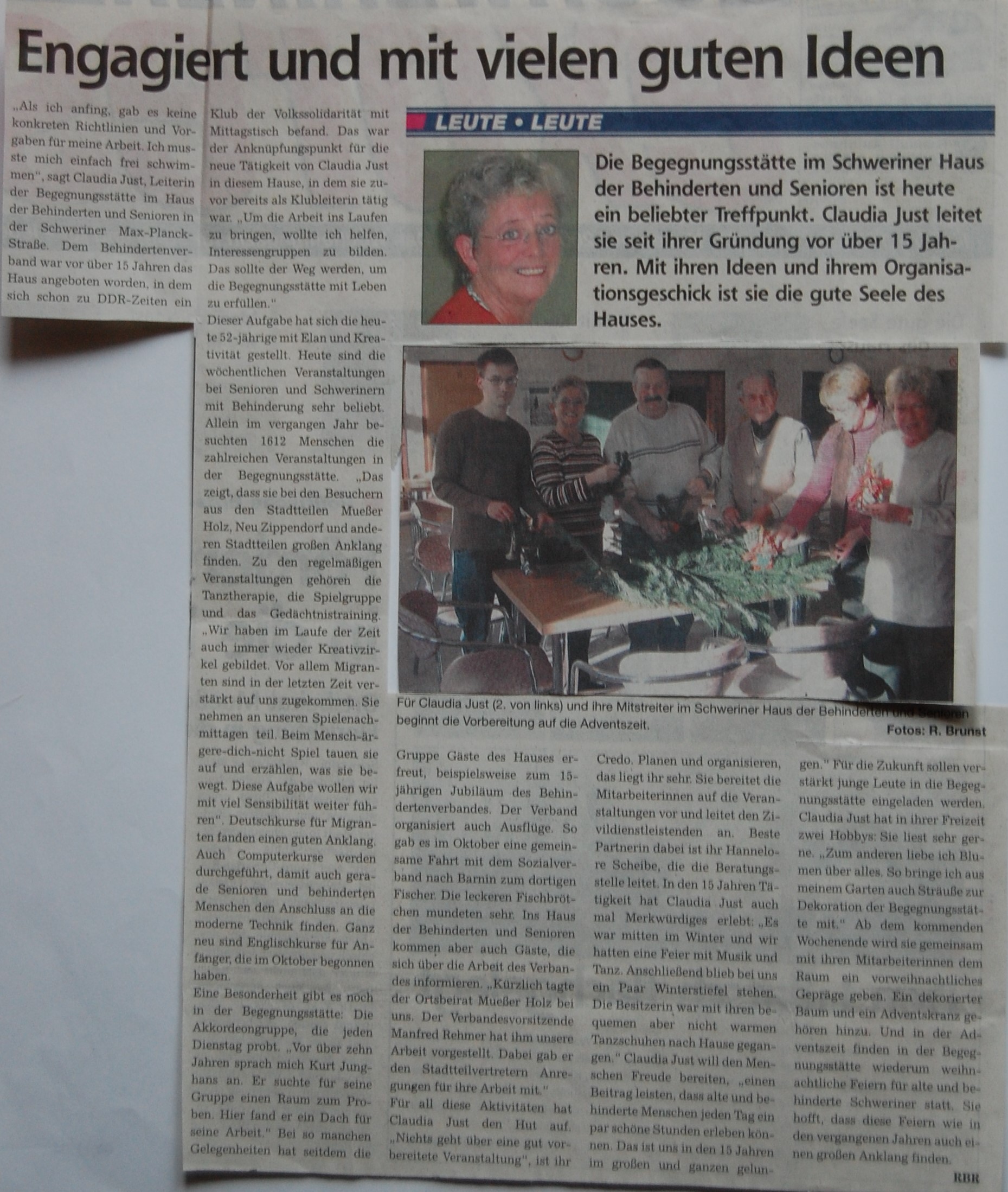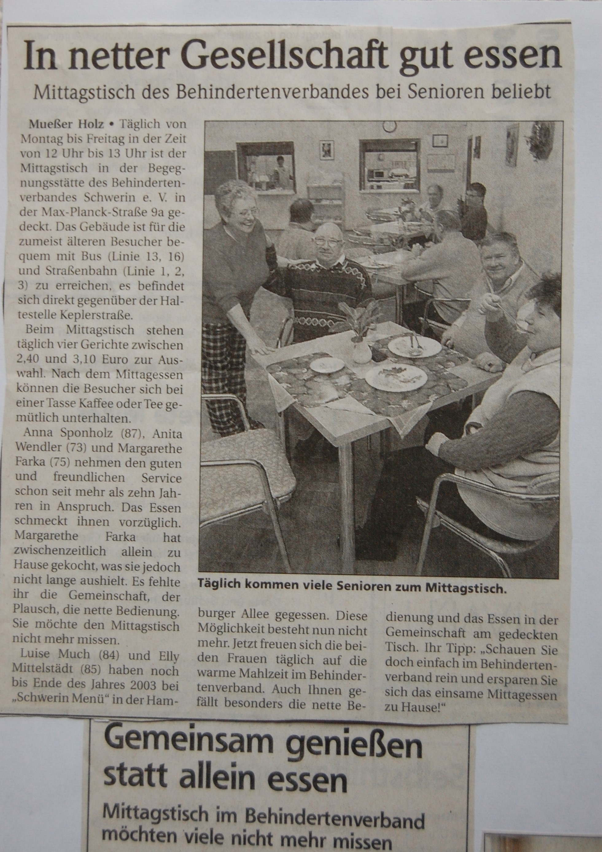 Veranstaltungen des Behindertenverbands Schwerin im Bertha-Klingberg-Haus ab 2003
