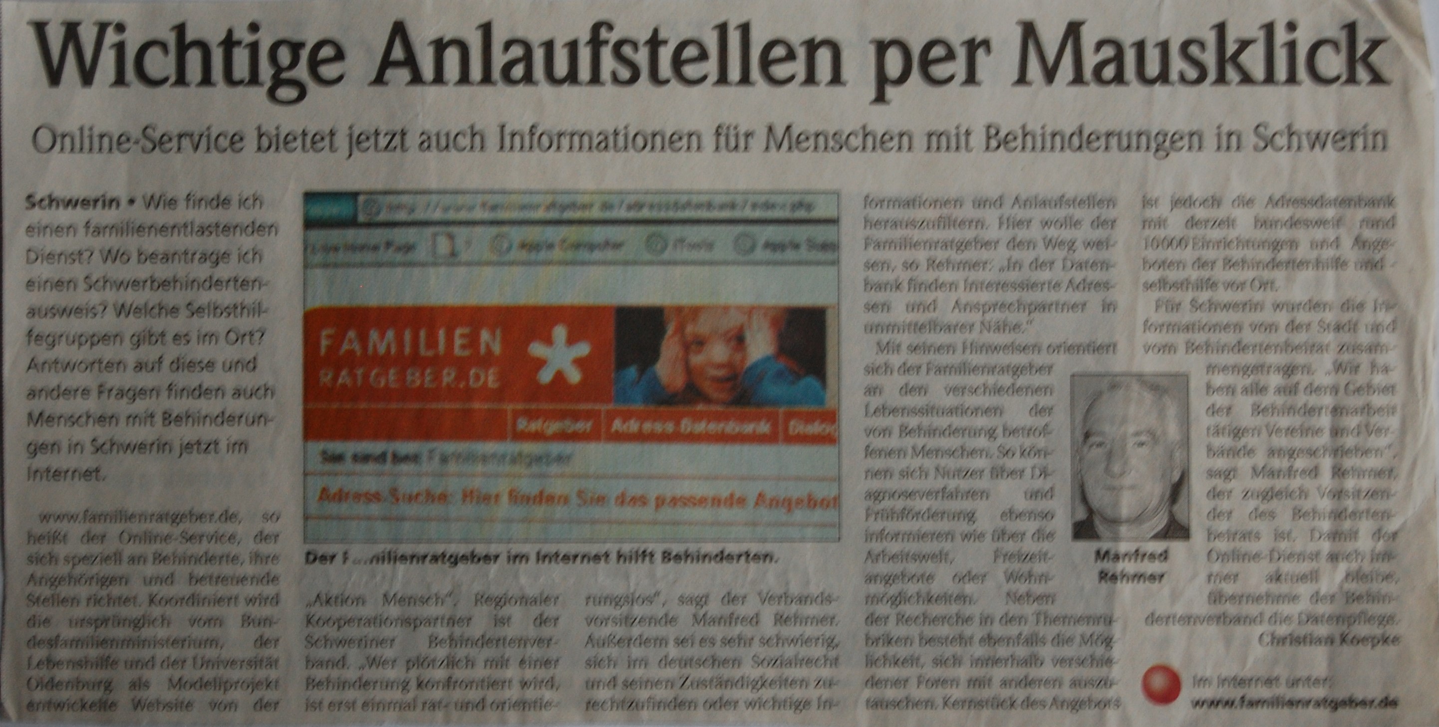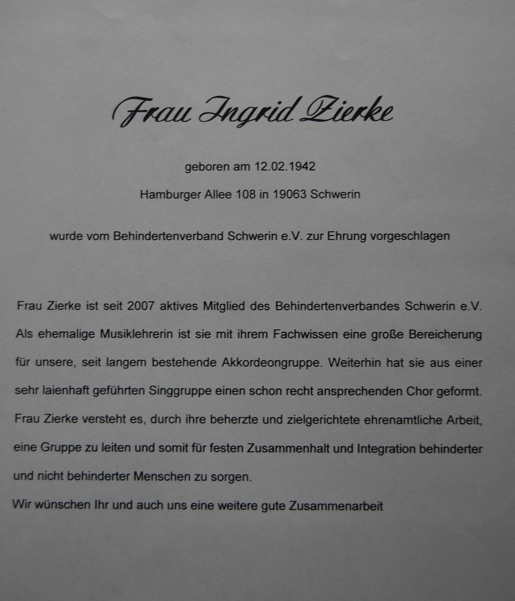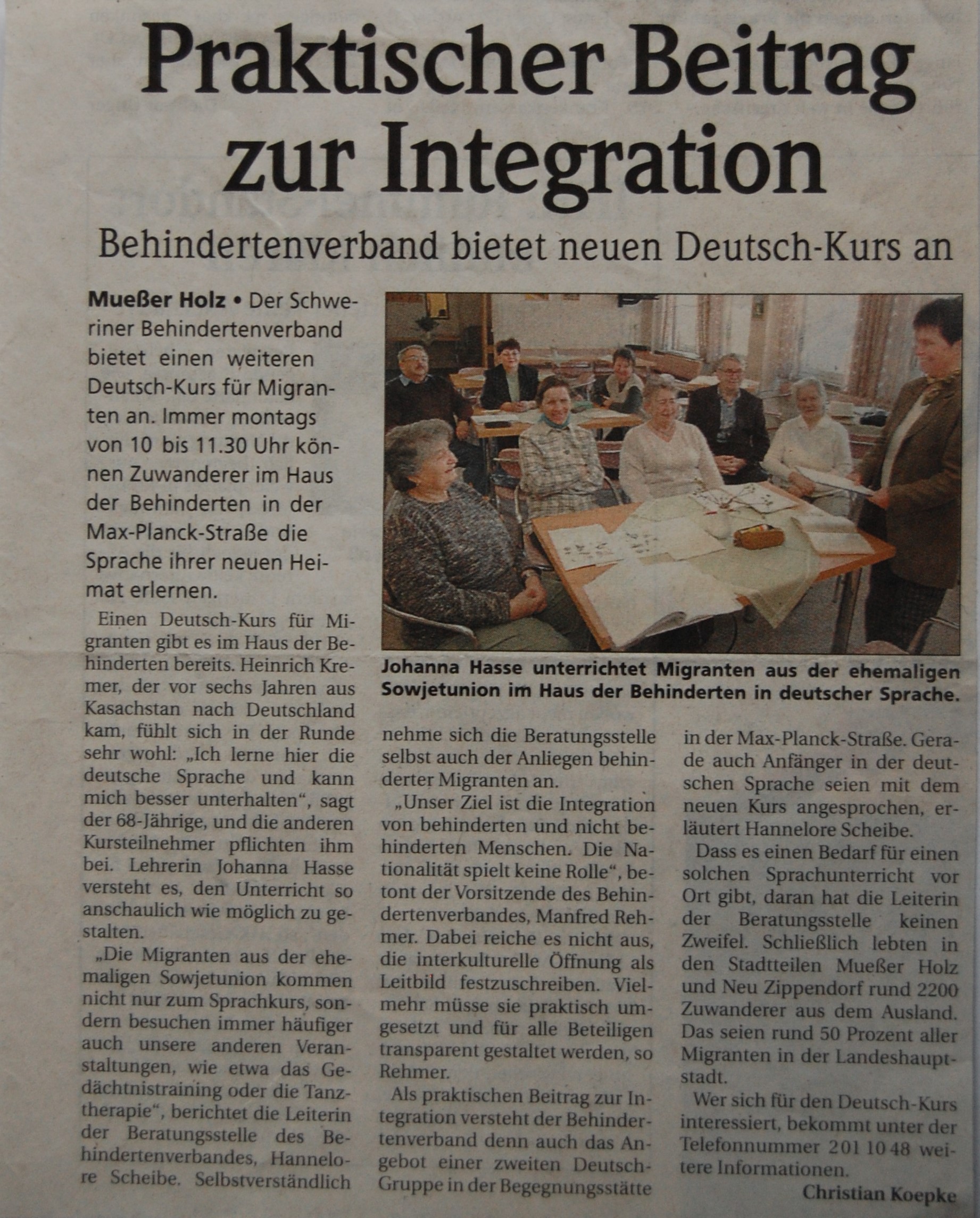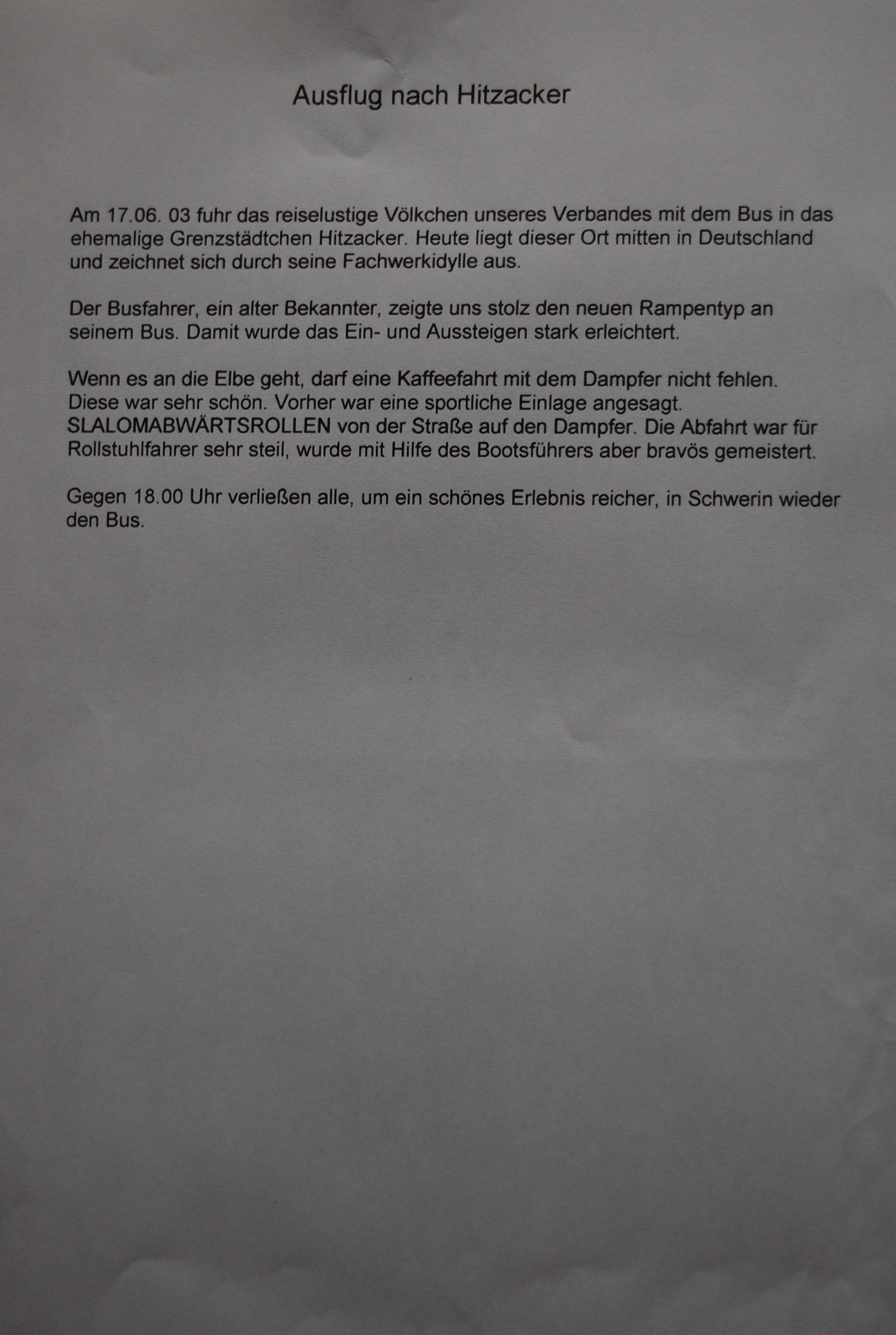 Veranstaltungen des Behindertenverbands Schwerin im Bertha-Klingberg-Haus ab 2003