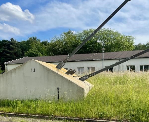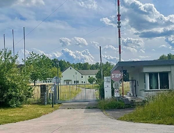 Hier ist ein aktuelles Foto, welches am 31.Mai 2025 entstand, Der alte Eingang mit Pförtnerhaus zum Sendergelände