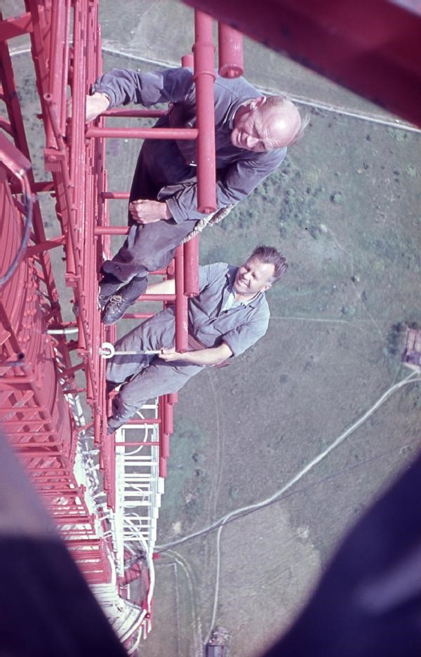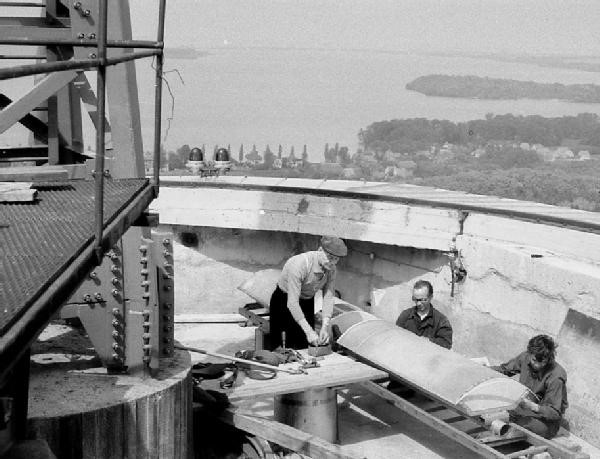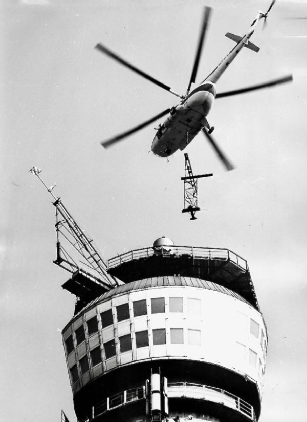 Nachfolgende 4 Fotos von Eberhard Jauch UHF-Antenne auf dem Fernsehturm, Montage im Frühjahr 1964