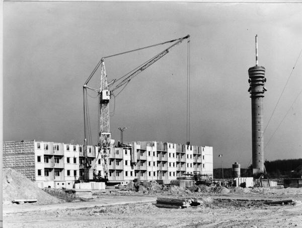Inzwischen ist der Turm mit seinen 136 m fertiggstellt und das Wohngebiet wird errichtet. Auch darauf warten die Schweriner, auf moderne Wohnungen mit Balkon, Fernheizung und Warmwasser. Das sozialpolitische Programm in der DDR für die hauptsächlich jungen Familien.