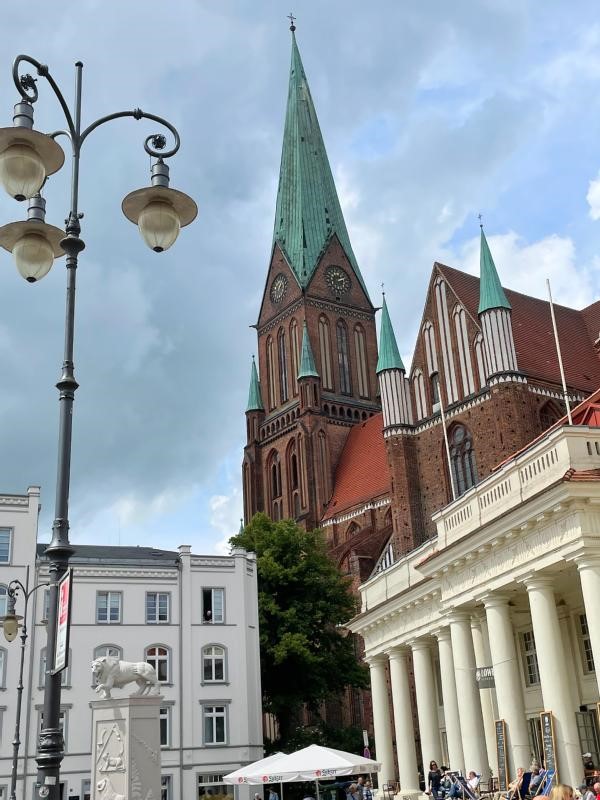 Der TV-Turm ist nun das höchste Gebäude in Schwerin, bis dahin war es der Dom St. Marien und St. Johannis zu Schwerin, kurz Schweriner Dom, dieser wurde zwischen 1270 und 1416 errichtet. Er ist eine Bischofskirche der Evangelisch-lutherischen Kirche. Er ist 116 m hoch. Foto Wolfgang Lill