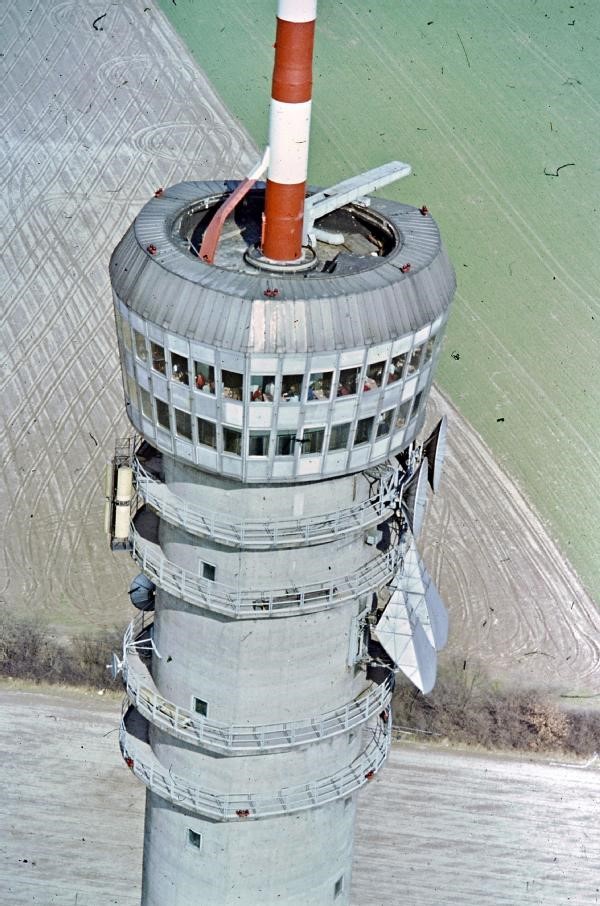 Das Bildchen ist von ~ 1964, als wir mit Privat-Skoda dort waren, die paar Betriebs-Autos reichten nicht für alle Türme aus (und es waren viele Leute draußen auf Strecke; denn das RVG960 & Co. mußte erst draußen "fertig entwickelt" werden, also wurden von jeder Sparte: Sender, Empfänger, Mod, Demod, ES, Fü (incl. DK) spezialisierte Mannen raus geschickt) und dann wir noch 2 Trupps vom Kundendienst spez. für die Antennen/Hohleiter/Ant.-Kabel/LE/ BLG, das waren schon gewaltige Herausforderungen betr. Autos, Übernachtungen (die Bettwäsche mußte ich aus der Abteilung mitgeben, da wir eigentlich überall auf den Türmen unsere Schlafstellen hatten) und der ständige Zeitdruck von VEB Hörnchen, denn Rafena (erst später Robotron) war immer im Zeitverzug. Also Arbeiten bis spät in die Nacht waren die Regel, Überstunden waren Pflicht, bezahlt wurde alles. Es waren z.T. Leute über ein Jahr draußen, daraus ergab sich das Problem, daß - kaum waren die Streckenmessungen usw. zu Ende - die Röhren alle wieder gewechselt werden mußten, denn die Post erwartete die Übergabe der Strecke mit voller Röhren-Laufzeit; also mußte danach wieder von vorn angefangen werden mit Entzerrung, Messen, Messen, .... Und Röhren gab es zwar, wir standen ja ziemlich weit oben a.d. Dringlichkeitslisten, aber die Wanderfeldröhren! Da habe ich so manche einzeln in Berlin a.d. Fabrik abgeholt, und dann gleich a.d. entsprechenden Turm kutschiert. ... Nun ist's aber gut!